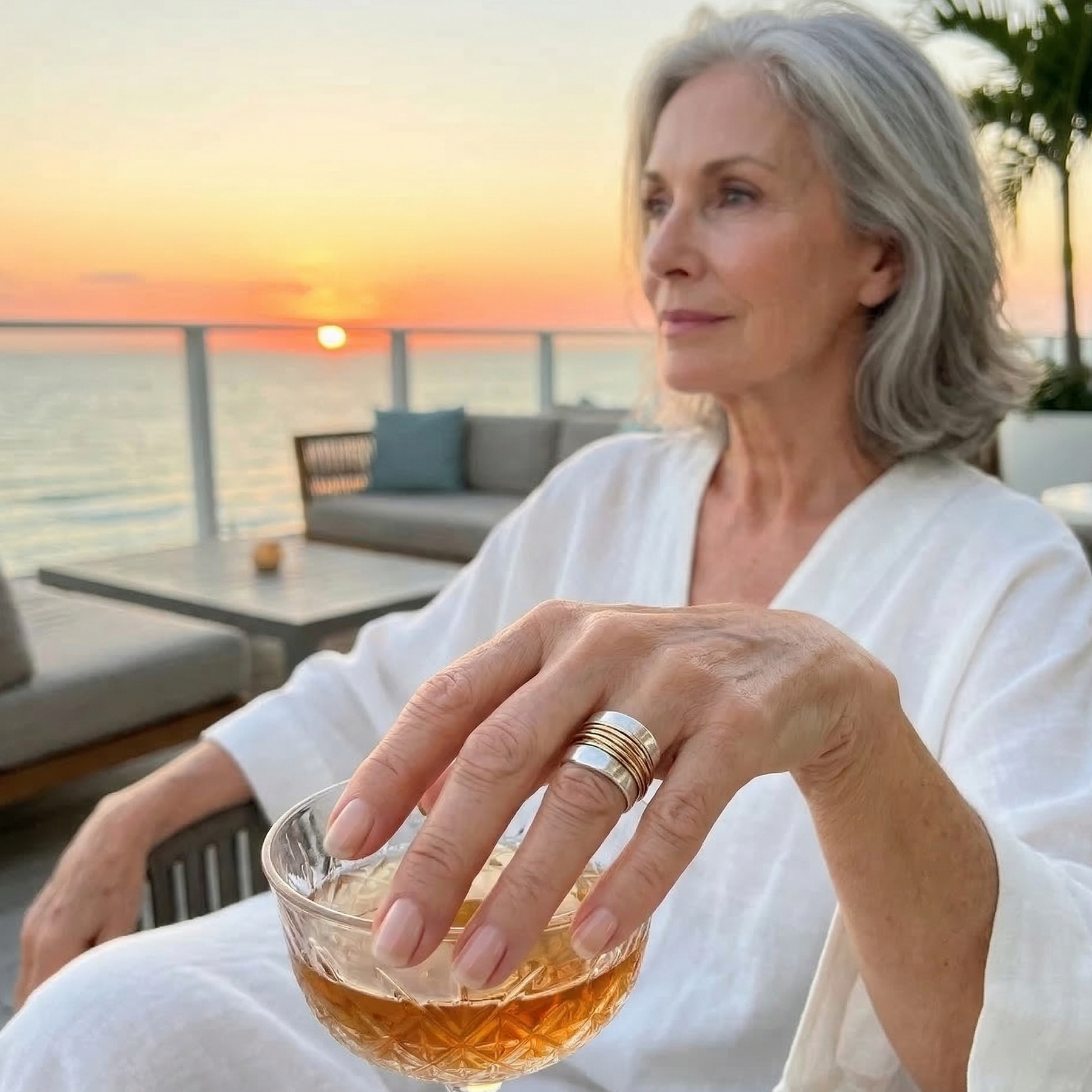 Un anillo de diseño moderno con detalles entrelazados, pensado para mujeres que buscan un estilo distintivo y sutil. Una pieza versátil que aporta carácter y elegancia a cualquier look diario.