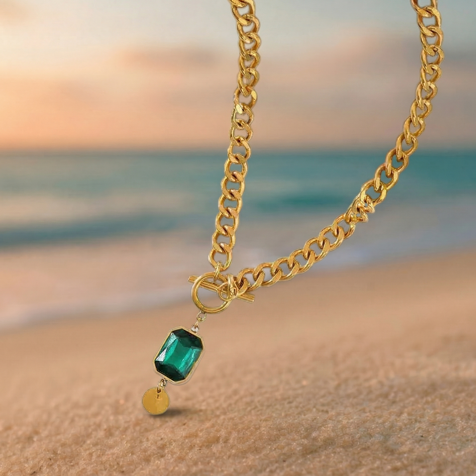 Collar de esmeralda grueso con colgante